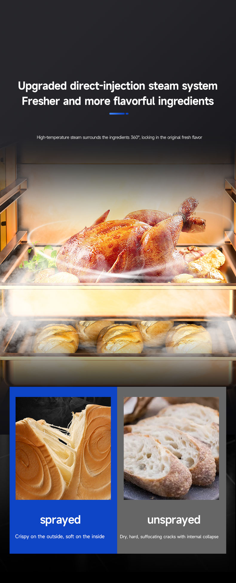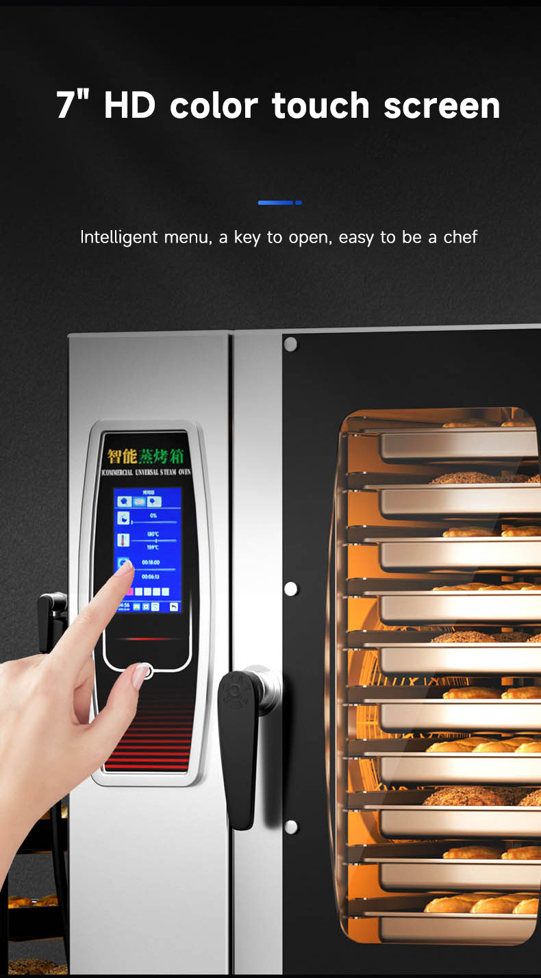 Power: Single steam 380v/9kw, single bake 380v/10kw, steam and bake 380v/9kw+10kw