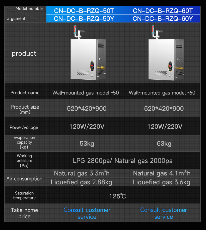 Product Model: CN-DC-B-RZQ-50T (Natural Gas) CN-DC-B-RZQ-50Y (Liquefied Gas)