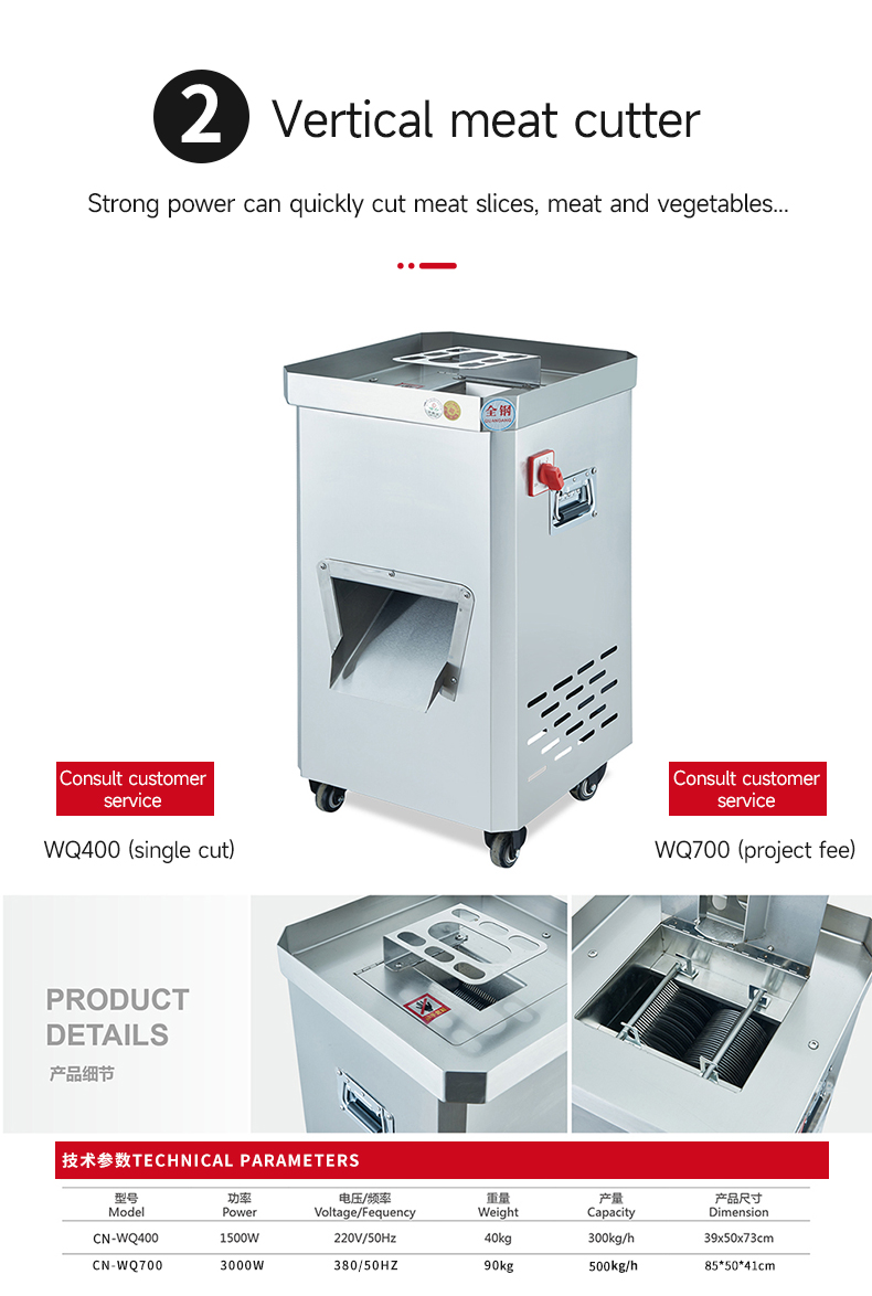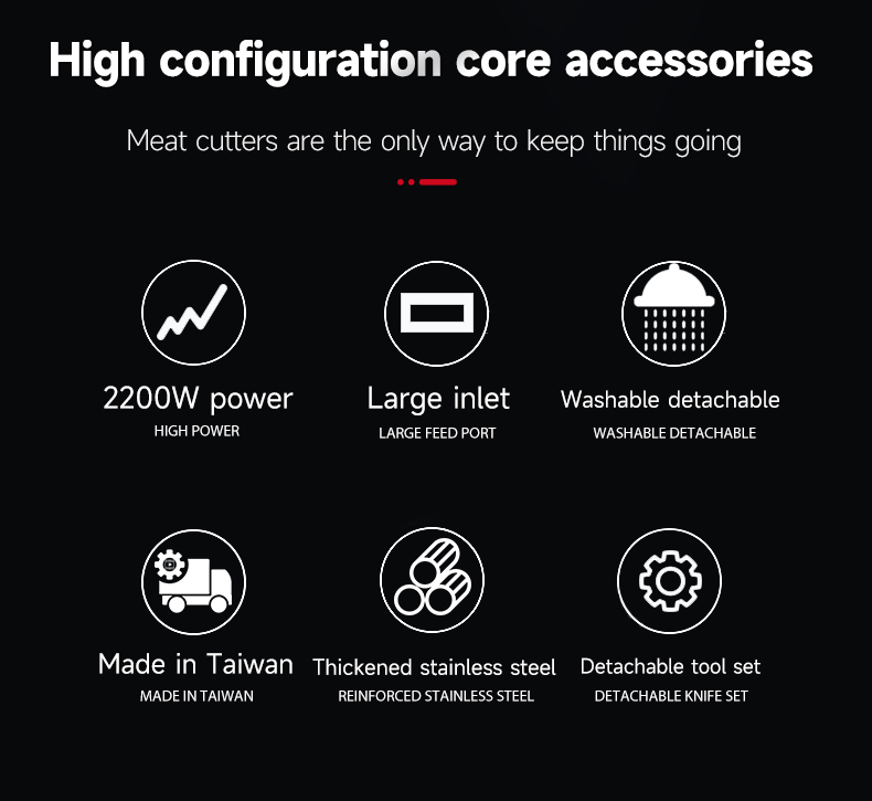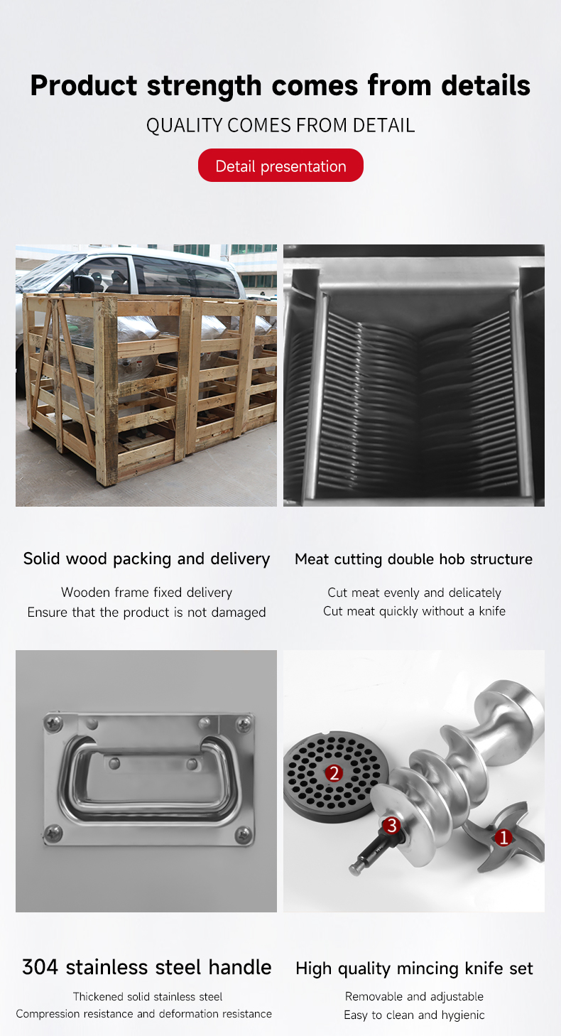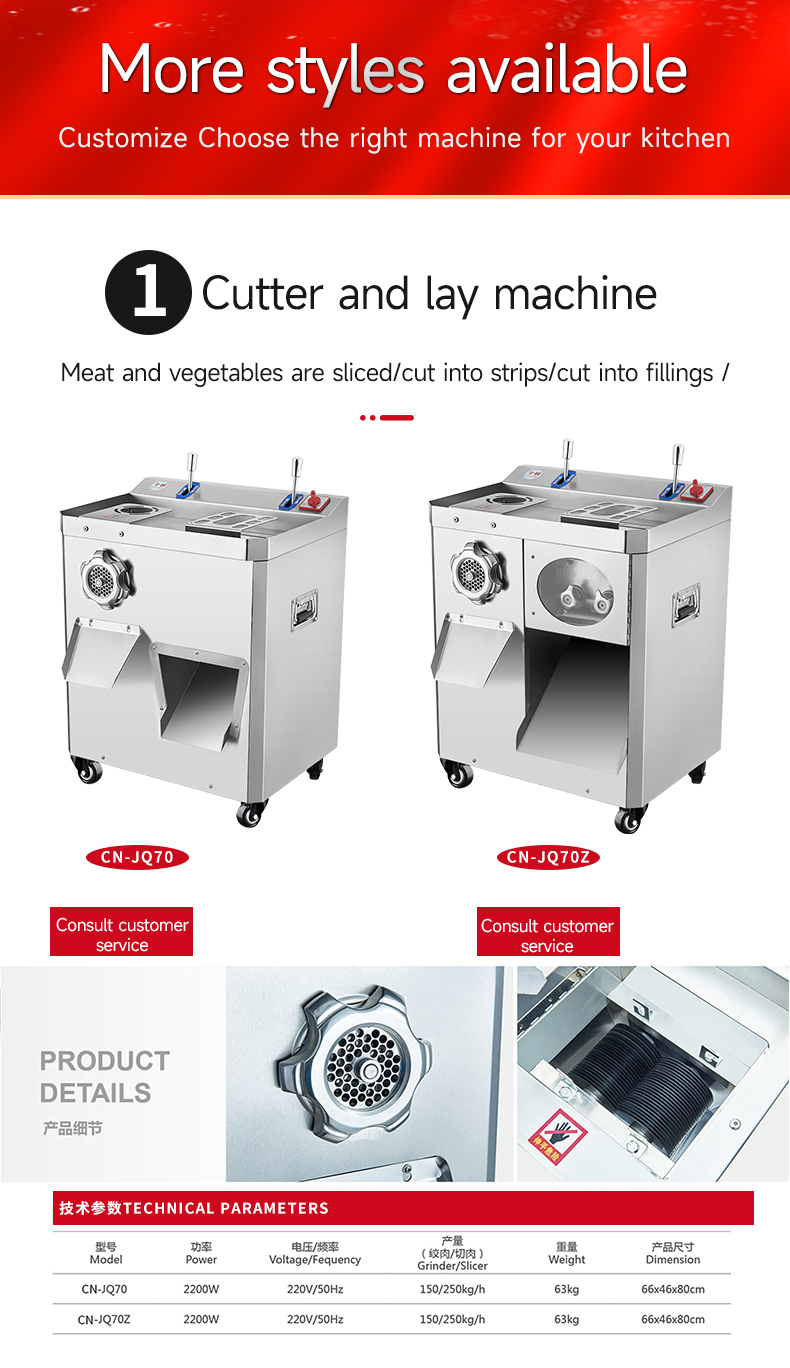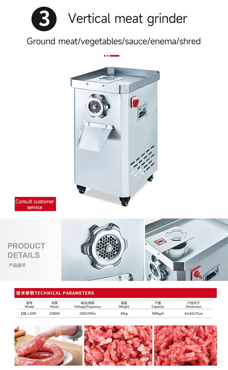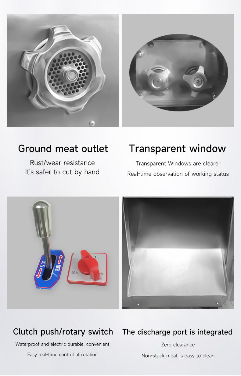Machine Function: Grinds meat / Vegetables / Makes sauce / Stuffs sausage / Slices