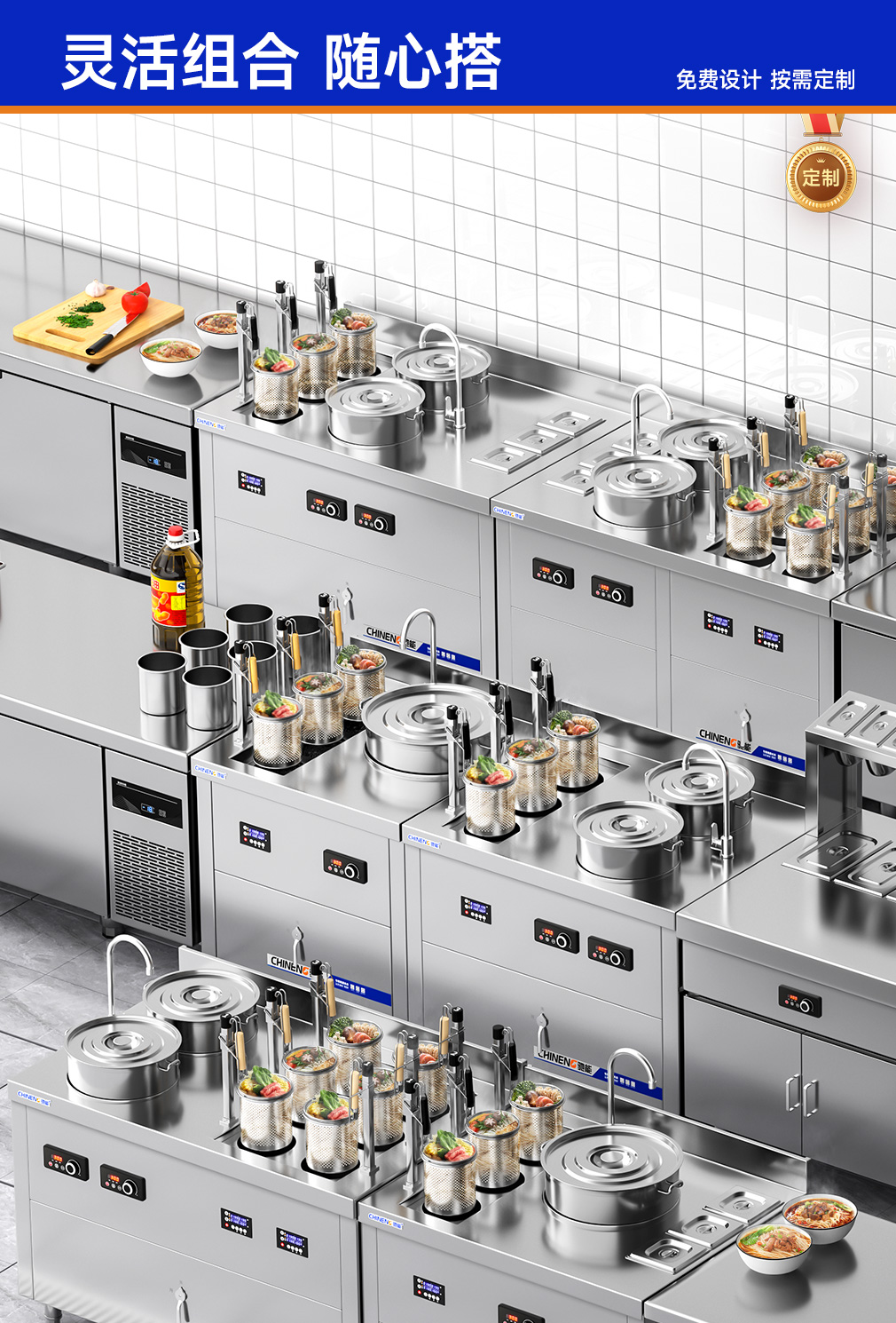 功率/电压:15KW/380V(煮面炉)        3.5KW*2/380V(煲汤炉)