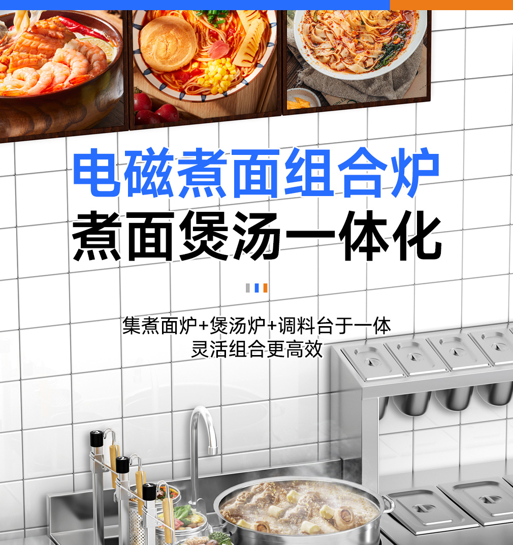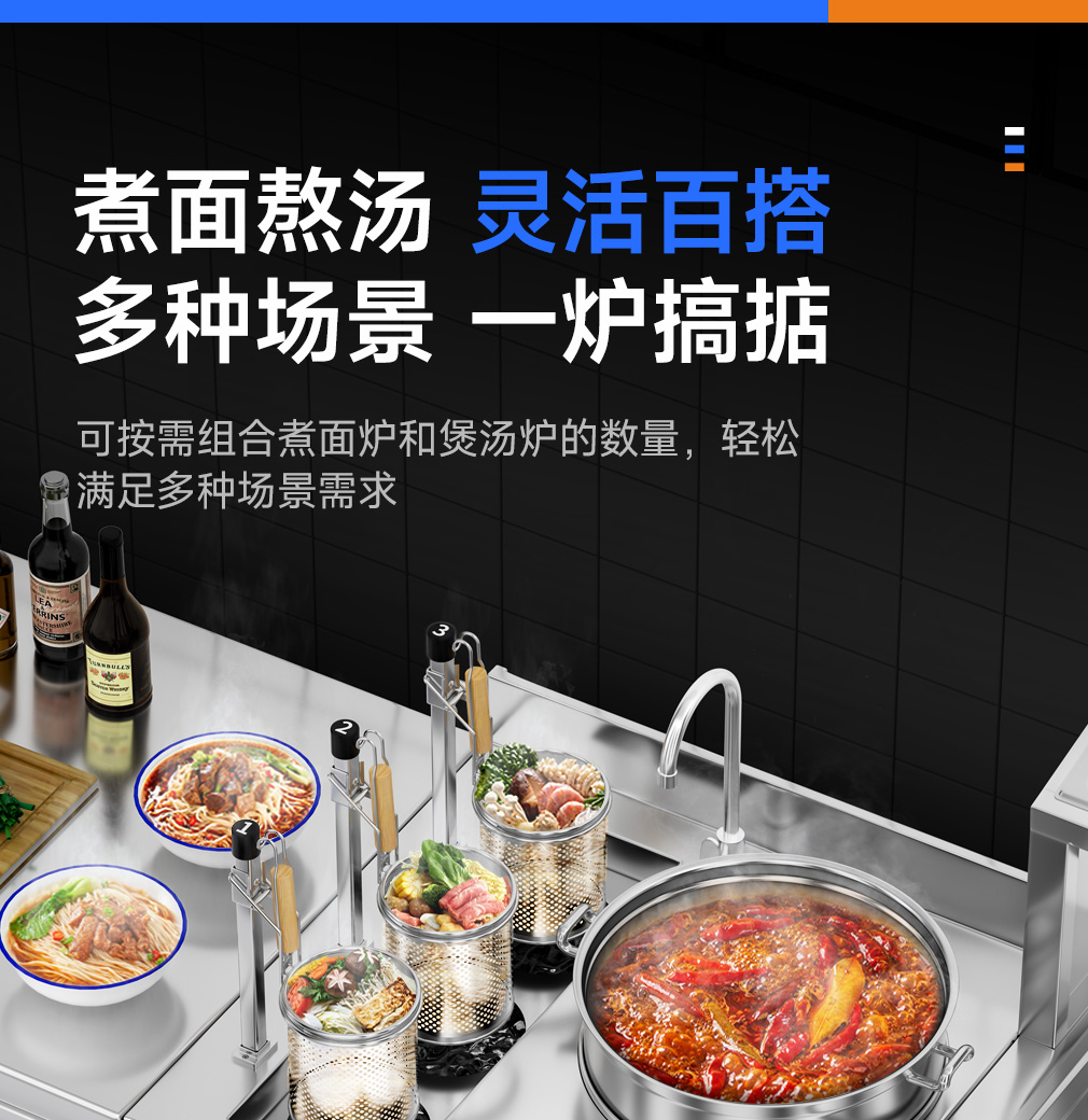 3头煮面炉+Φ40CM单头汤炉+3格调料台