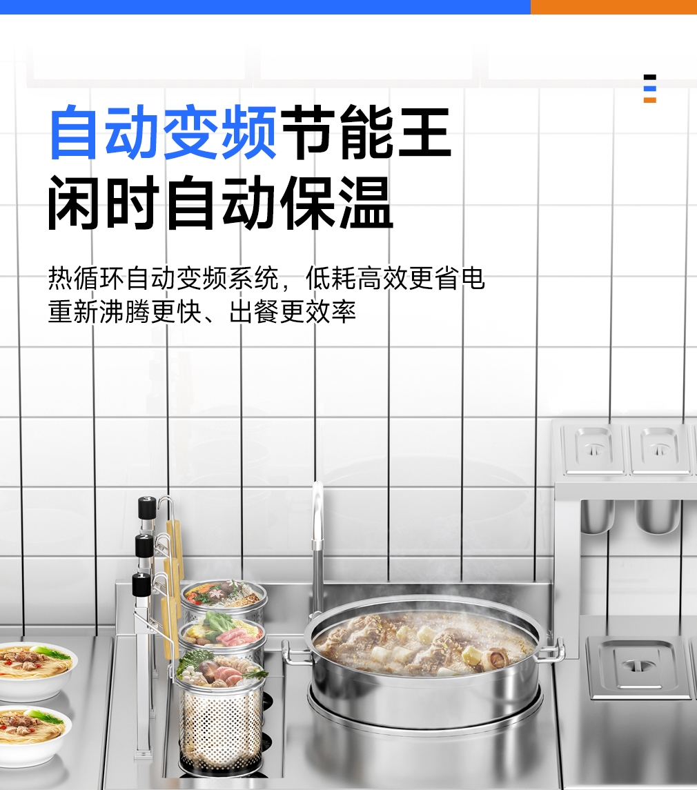 功率/电压:8KW/380V(煮面炉)        3.5KW*2/380V(煲汤炉)