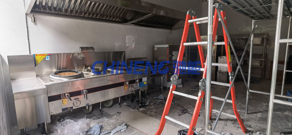 厨房设备:双头单尾燃气小炒炉,三门透窗蒸柜,四头煲仔炉,热风循环消毒柜,四门冷柜等