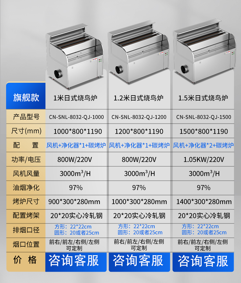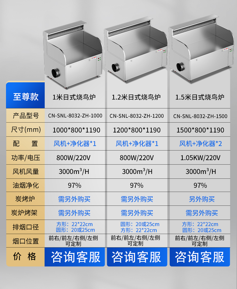 排烟口径:方形:22*22cm 圆形:20或者25cm